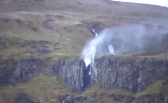 סופת הענק "דניס" ממשיכה להכות בבריטניה, וגרמה לתופעה מיוחדת במינה. היום (ראשון) פורסם תיעוד של מפל שה"התהפך" כתוצאה מעוצמת הרוח שהעיפה את המים למעלה, נגד כיוון הזרימה. ההערכות הן שבשיא הסערה ינשבו רוחות במהירות של כ-110 קמ"ש ויירדו 120 מילימטרים של גשם.