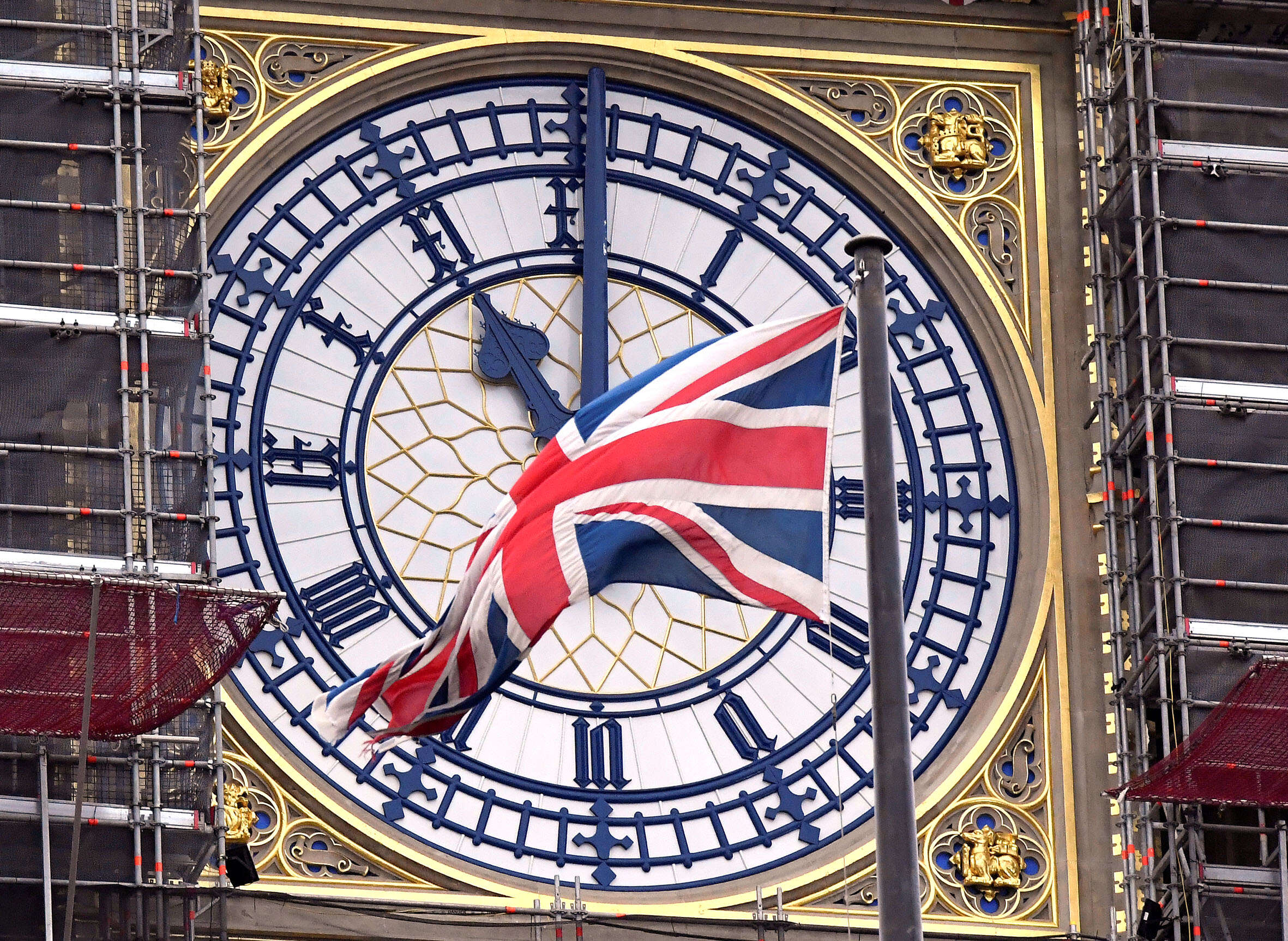 דגל בריטניה על שעון הביג בן שבשיפוצים // צילום: רויטרס // דגל בריטניה על שעון הביג בן שבשיפוצים | צילום: צילום: רויטרס