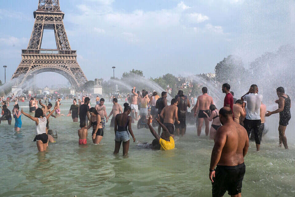 ההמונים יוצאים להשתכשך למרגלות מגדל אייפל // צילום: איי.פי
