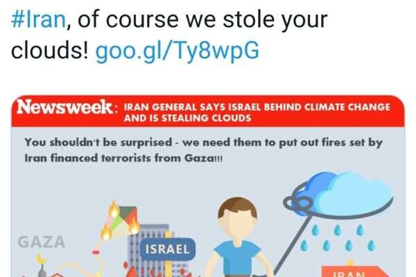 לאחר שאיראן האשימה את ישראל בבצורת בדרום המדינה, וטענה כי היא "גונבת לנו עננים ושלג", מגיעה התגובה ההיתולית של משרד החוץ • המחסור במי שתייה גרם להפגנות אלימות נגד המשטר