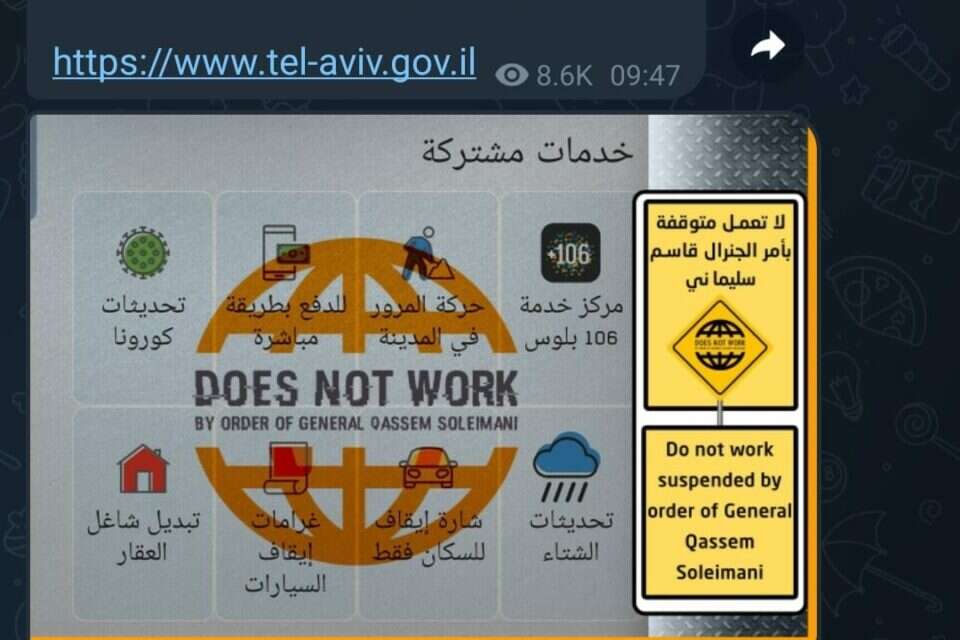 קבוצת האקרים עיראקיים המזוהה עם המיליציות הפרו-איראניות בעיראק פרסמה היום (שני) כי אנשיה הפילו את אתר האינטרנט של עיריית תל אביב.