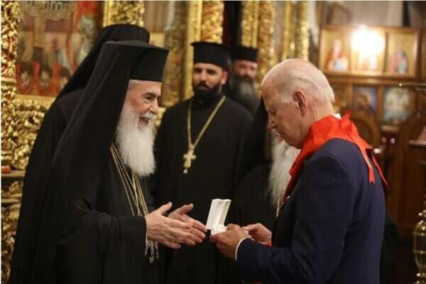 "חברי עמותות ציוניות קיצוניות מנסים להשתלט על רכוש ונכסים בשער יפו בירושלים, ברובע הנוצרי ובאזור כנסיית הקבר, במערכה מכוערת שהם מנהלים נגד הנוכחות הנוצרית בעיר", אמר הפטריארך לביידן תוך שהוא מסביר לו על סכנת ההגירה של הנוצרים מירושלים. "שמירה על המצב הקיים היא בראש סדר העדיפויות של הכנסיות, כשם שצריך לשמור על האפוטרופסות של הממלכה ההאשמית (ממלכת ירדן, דב"ש) במקומות הקדושים בעיר".
