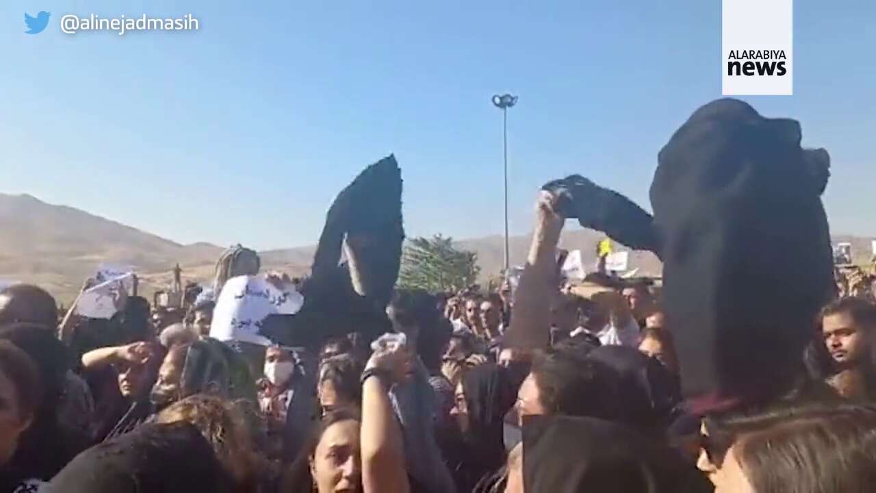 המפגינים, שקראו קריאות "מוות לדיקטטור" ו"אהרוג את מי שרצח את אחותי", תלשו דיקונאות של מפקד כוח קודס של משמרות המהפכה לשעבר קאסם סולימאני. המפלגה כורדית של איראן הודיעה הבוקר על שביתה כללית שתתקיים ברחבי החבל היום ומחר כאות מחאה על הריגתה של הצעירה וקראה להמונים לצאת להפגין נגד המשטר.
