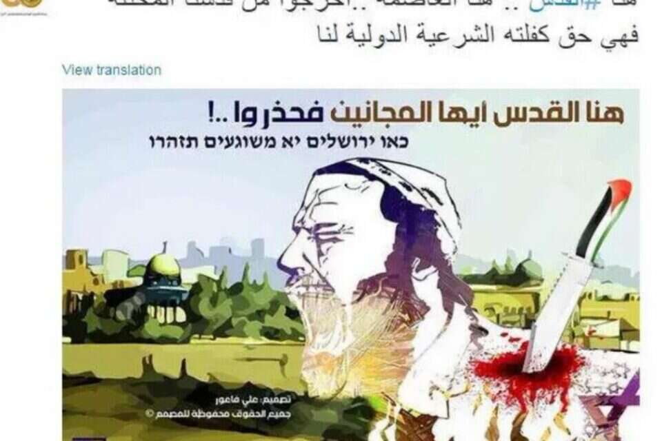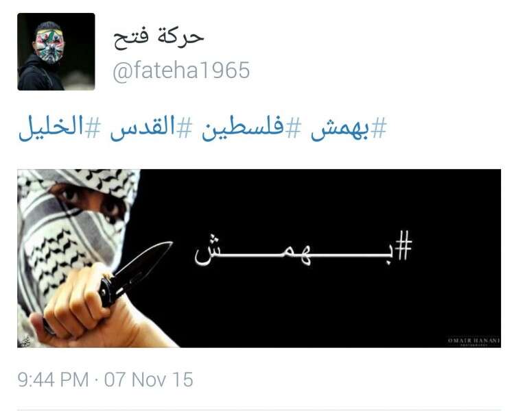 באחד הפוסטים מופיעה דמות חרדית דקורה בגבה עם רקע של הר הבית, בה נרשם בערבית "השבח לשהידים הפלשתינים שהקריבו נפשם למען אל אקצה. להמשיך לפגוע במשוגעים הציונים באל קודס״. בעברית שגויה אף נכתב: "כאן ירושלים יא משוגעים תזהרו". בפוסט אחר מופיע רעול פנים עם סכין, המעודד את ״המשך אינתיפאדת הסכינים וההתנגדות החמושה לכיבוש הציוני."