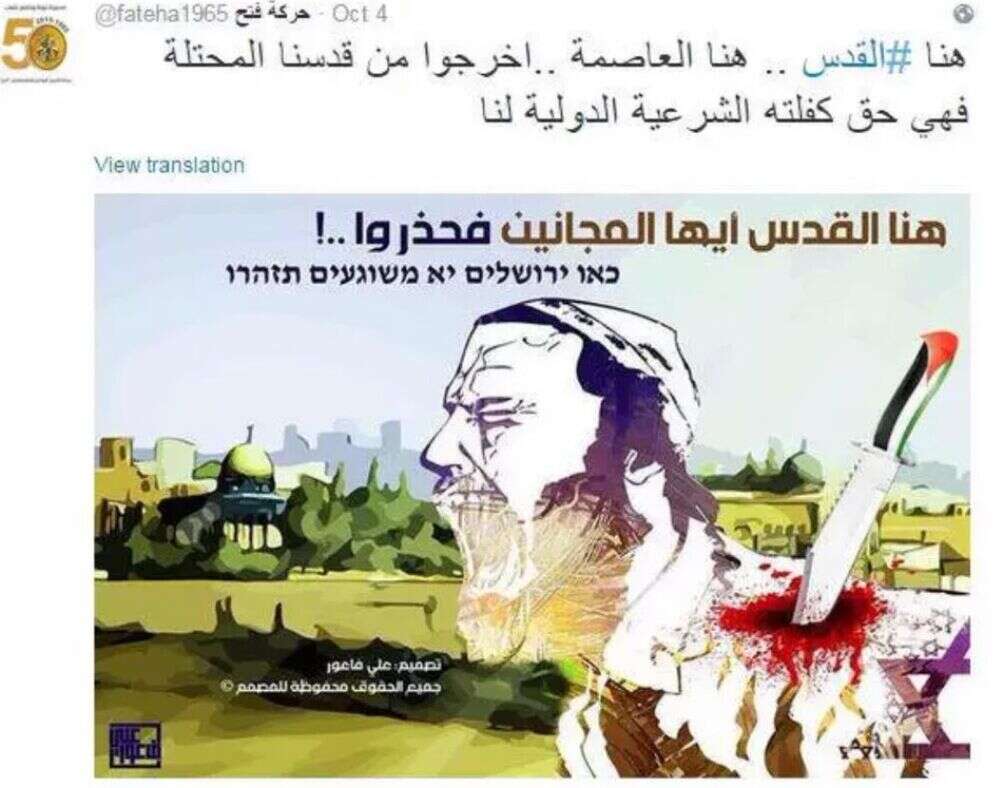 עוד פוסט רשמי של הרש"פ המעודד את "המשך אינתיפאדת הסכינים" // צילום: מתוך הרשת