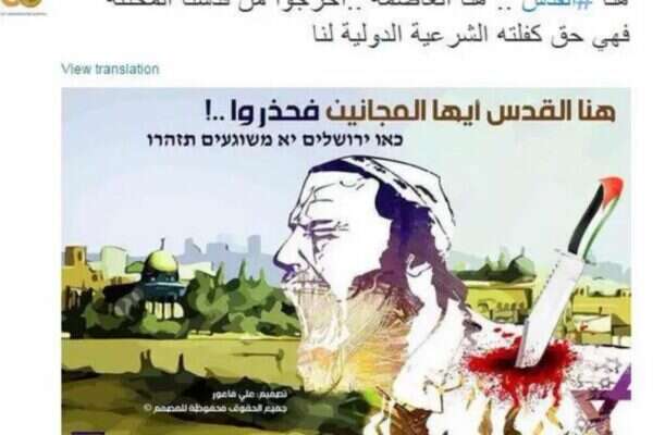 באחד הפוסטים מופיעה דמות חרדית דקורה בגבה עם רקע של הר הבית, בה נרשם בערבית "השבח לשהידים הפלשתינים שהקריבו נפשם למען אל אקצה. להמשיך לפגוע במשוגעים הציונים באל קודס״. בעברית שגויה אף נכתב: "כאן ירושלים יא משוגעים תזהרו". בפוסט אחר מופיע רעול פנים עם סכין, המעודד את ״המשך אינתיפאדת הסכינים וההתנגדות החמושה לכיבוש הציוני."