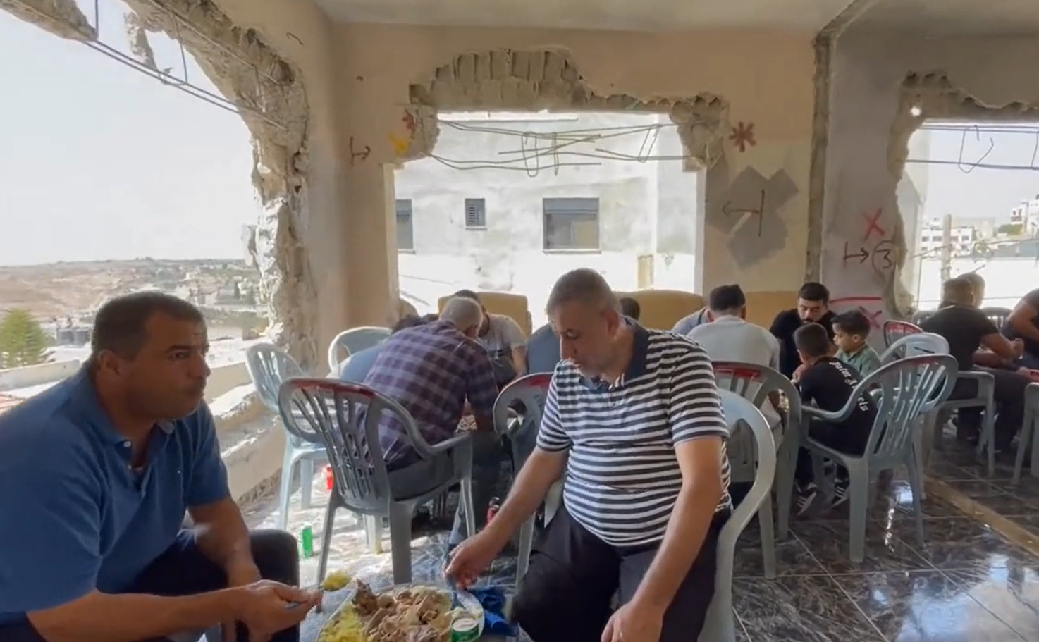 בתיעוד שהתפרסם ברשתות החברתיות נראים פלשתינים סועדים בחדרים ההרוסים, במהלך ארוחה לרגל חתונה שהתקיימה.