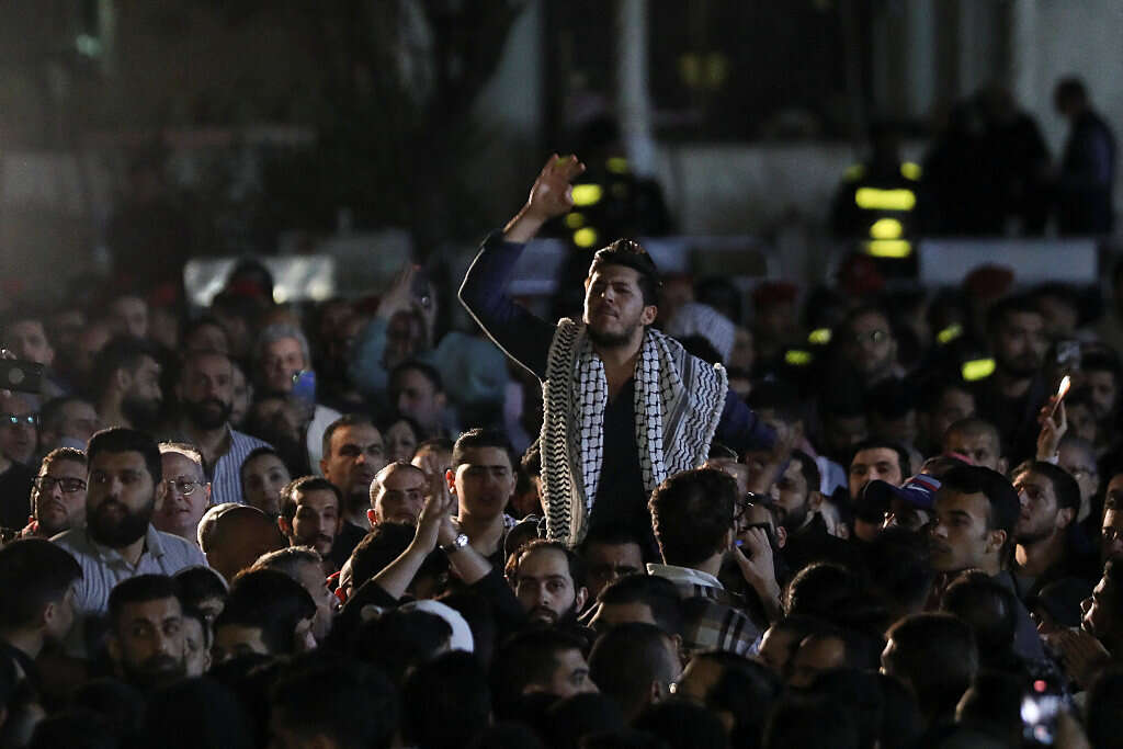הרחוב הירדני תוסס: המונים השתתפו אמש (שישי) בשבת בהפגנה נגד ישראל בעמאן שבירדן תוך שהם קוראים את הצהרותיהם האלימות נגד ישראל ובעד טרור.