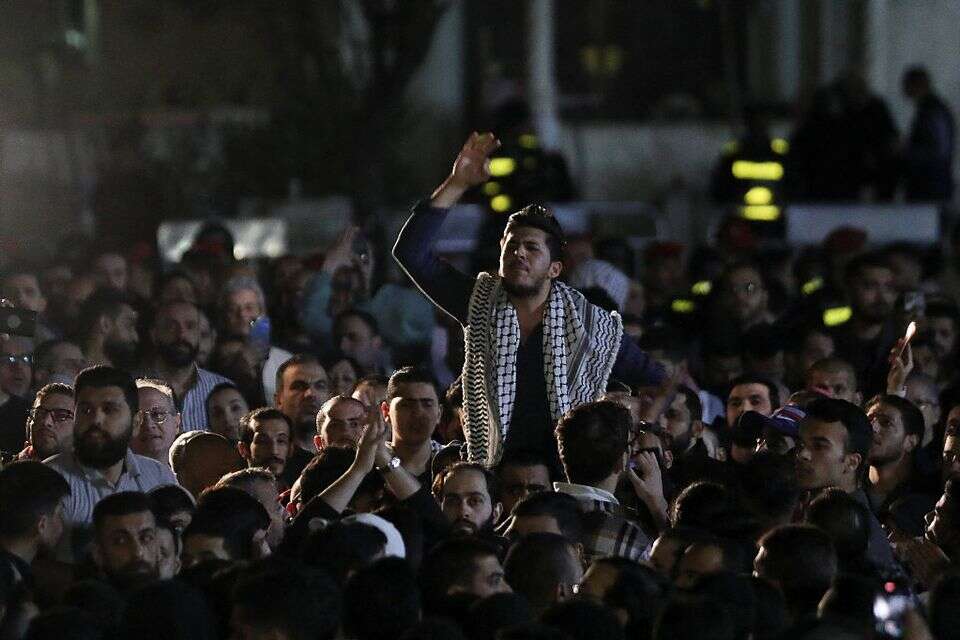 בלילה האחרון לחודש רמדאן: הפגנות תמיכה בחמאס מול שגרירות ישראל בירדן // רשתות ערביות