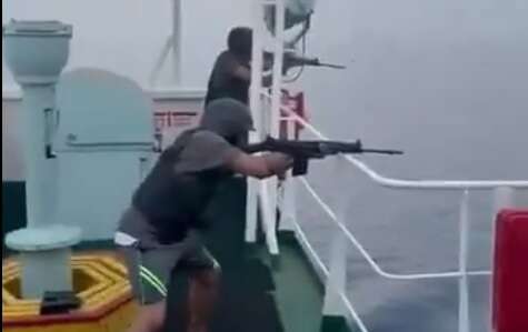 בסרטון שהופץ היום ברשתות החברתיות, נראים המלחים כשהם חמושים בנשק קל, יורים לעבר כלי השיט הזעיר שמתקדם באופן רועש לעבר הספינה. אחרי כמה שניות של ירי נראה פיצוץ עצום סמוך לירכתי הספינה.