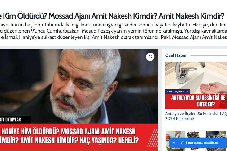 כמה כלי תקשורת בטורקיה פרסמו במהלך היממה החולפת על חשיפת זהותו של איש המוסד שחיסל את ראש הלשכה המדינית של חמאס, איסמעיל הנייה, כולל פרטים אישיים שלטענת כלי התקשורת פורסמו על ידי גולשים אנונימיים.
