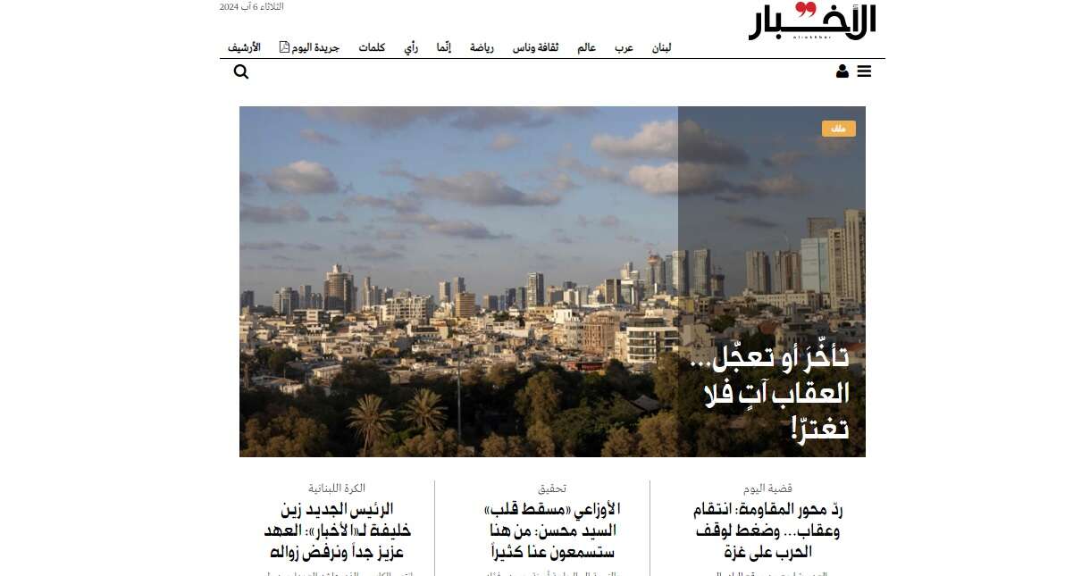העיתון הלבנוני "אל אחבר", המזוהה עם ארגון הטרור חיזבאללה, פרסם שורה של כתבות פרשניות תחת כותרת הגג "עיכוב או חיפזון, העונש יגיע, אל תטעו". במאמר המערכת מבטיח העיתון "גשם כמותי" של טילים ומעורבות כבדה של ארגון חיזבאללה בתגובה.