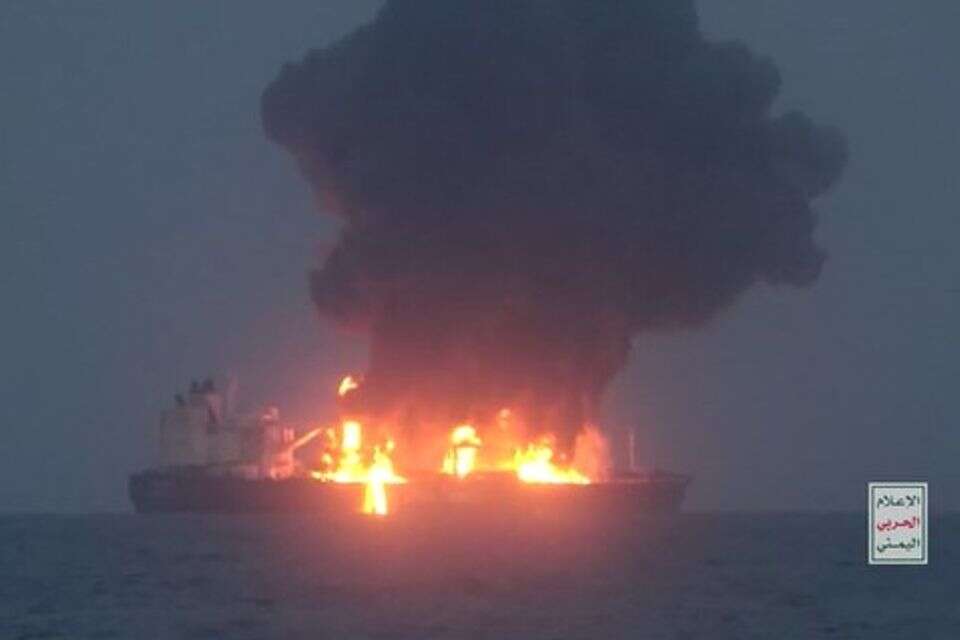 החות'ים הפיצו היום (שישי) תיעוד של שריפה שפרצה בספינה היוונית SOUNION אחרי שתקפו אותה בים האדום ביום שישי. מוקדם יותר דווח כי צוות הספינה פונה ממנה.