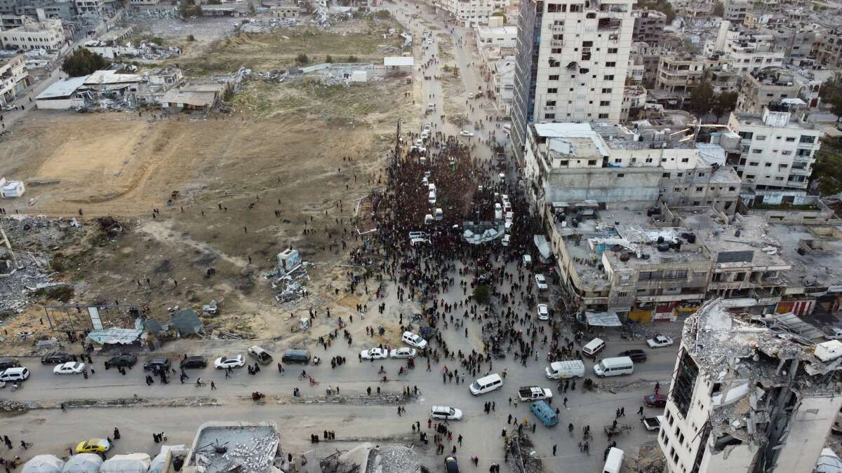 חמאס ניסה ליצור אתמול (ראשון) מצג תמיכה של אלפי עזתים שנמצאים מסביב לשלוש החטופות לפני ששוחררו, אך תמונות שצולמו מרחפן חושפת את התרמית. לפי התמונות, רק עשרות בני אדם השתתפו ב"הפקה" של חמאס לצד כעשרים מחבלים חמושים.