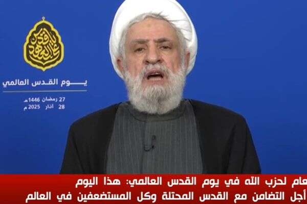 אחרי התקיפה בדאחייה של ביירות: מזכ"ל חיזבאללה נעים קאסם אמר הערב (מוצ"ש) בנאומו כי אם ישראל תמשיך להפר את ההסכם ולבנון לא תשיג את התוצאה הרצויה, "לא יהיה לנו ברירה אלא לפנות חזרה לאופציות אחרות".