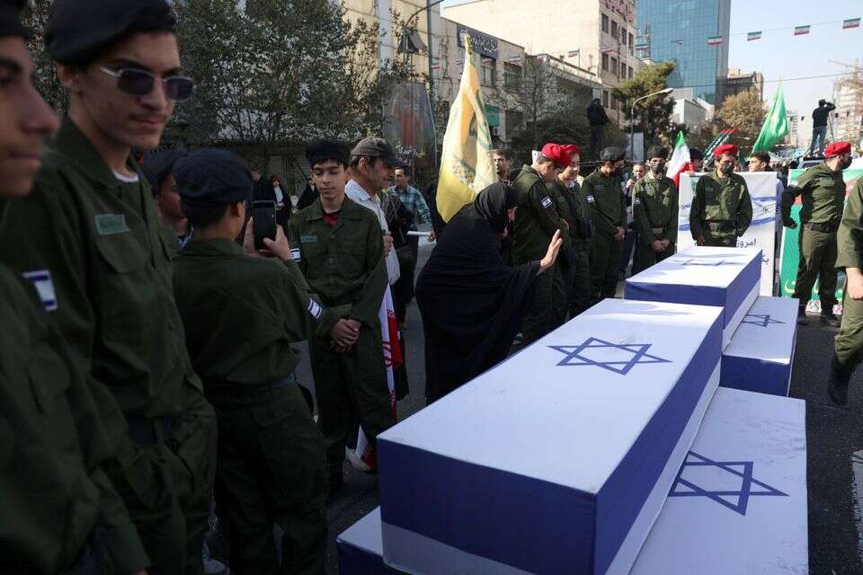 מייצג תליית נתניהו וטראמפ ברחובות טהרן // רשתות חברתיות