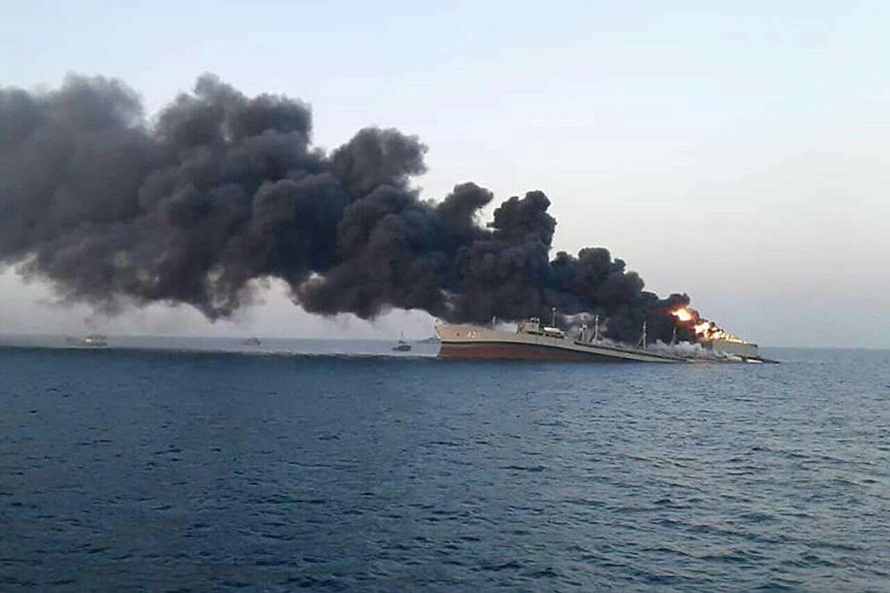 השמדת ספינת מלחמה איראנית סמוך לבנדר עבאס // רשתות חברתיות