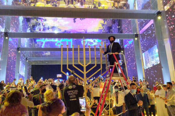 לאחר שהדליק בשנה שעברה את החנוכייה במגדל הגבוה בעולם, הבורג' ח'ליפה של דובאי, הדליק הערב (ראשון) רבה של איחוד האמירויות, הרב לוי דוכמן, את החנוכייה המעטרת את הביתן הישראלי ב-EXPO של דובאי, התערוכה הגדולה ביותר בעולם, שאליה הגיעו עד כה למעלה מ-2 מיליון איש. נר ראשון של חנוכה הודלק הערב גם בביתן של בחריין על ידי שגרירת בחריין לשעבר בארה"ב, הודא נונו, בכירת הקהילה היהודית בבחריין ובמדינות המפרץ. תמונה מרגשת נוספת של חנוכייה הגיעה מכווית.