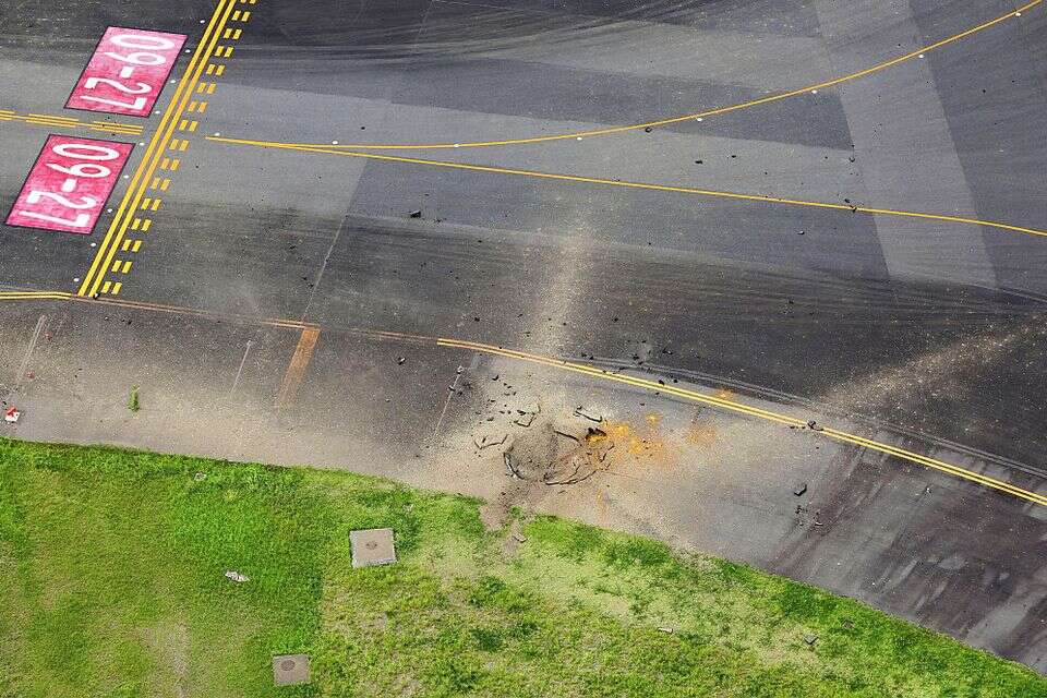 The explosion partially destroyed the taxiway. Police had previously found unexploded ordnance at the airport, as the airport is located on the site of a former airbase. pic.twitter.com/iu6MknxbXq