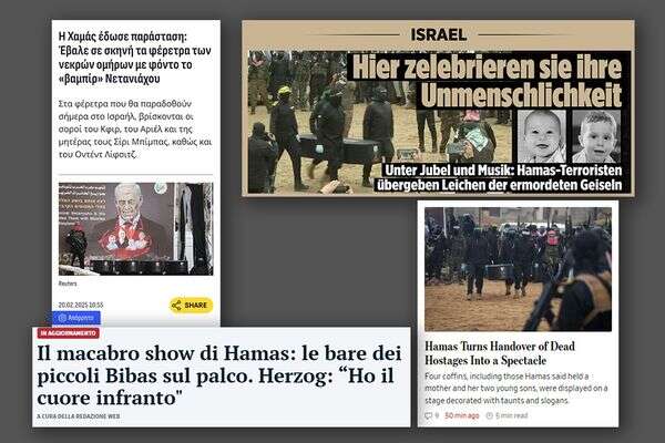 בכלי תקשורת ביוון כתבו על "הטקס" המשפיל, כי הוא "הצגה רעה של חמאס", ו"מופע אכזרי". "לה-סטמפה" האיטלקי כתב: "מופע מקאברי של חמאס - ארונות הקבורה של הביבסים הקטנים על הבמה".