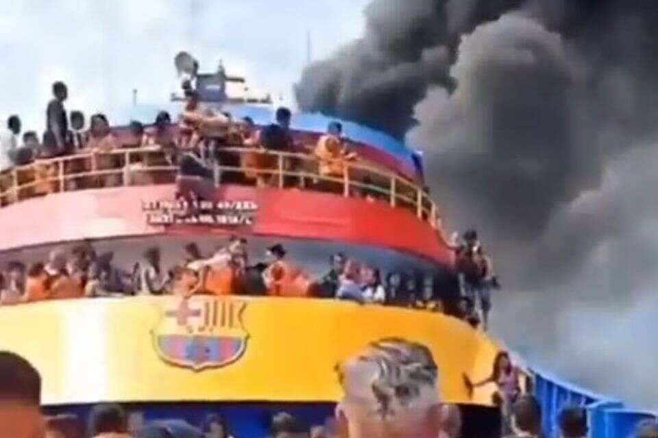 צילומים מצמררים הראו נוסעים קופצים למים, רבים מהם לבושים חגורות הצלה כתומות בהירות, כשהלהבה קרעה את הספינה. סרטונים תיעדו את הצרחות והקריאות הנואשות לעזרה מצד הנוסעים כשהכאוס התפתח. השמיים מעל החשיכו מעשן כשהספינה בערה מגוף הספינה ומעלה.