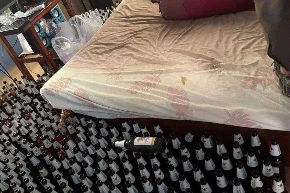 כשהגיעו אנשי ההצלה למקום, הם מצאו יותר מ-100 בקבוקי בירה מסודרים בקפידה על רצפת חדר השינה, עם שביל צר בלבד ביניהם, שאיפשר לגבר להיכנס ולצאת ממיטתו.