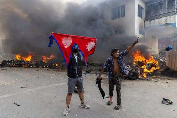 רובע הממשל בעיר קטמנדו עולה בלהבות לאחר שמפגינים הסתערו על בניין הפרלמנט, על משרדי הממשלה השונים ועל בתי השרים והעלו את כולם באש. בכמה מקרים נראה כי המפגינים הצליחו להשתלט על כלי נשק ונראו מסתובבים חמושים ברחובות הבירה. המשטרה נסוגה מהאזור מחשש לשפיכות מים נוספת. שדה התעופה הבינלאומי של קטמנדו נסגר לטיסות מחשש שהאלימות תגלוש לשדה.