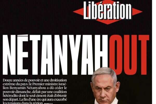 ה"ליברסיון" הצרפתי הקדיש לראש הממשלה את השער שלו, שם נכתב שמו לצד המילה האנגלית ל"החוצה". "לאחר 12 שנות שלטון ימני קיצוני, נתניהו הוכרע על ידי קואליציה שכל מטרתה הייתה להפילו. זו סיומה של תקופ שהביאה להחרפת המתיחות באזור", נכתב בכותרת המשנה.