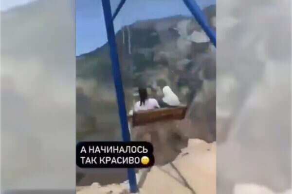 רגע מצמרר: שתי צעירות שהתנדנדו בחוזקה מעל קצה צוק ברוסיה, נפלו ושרדו.