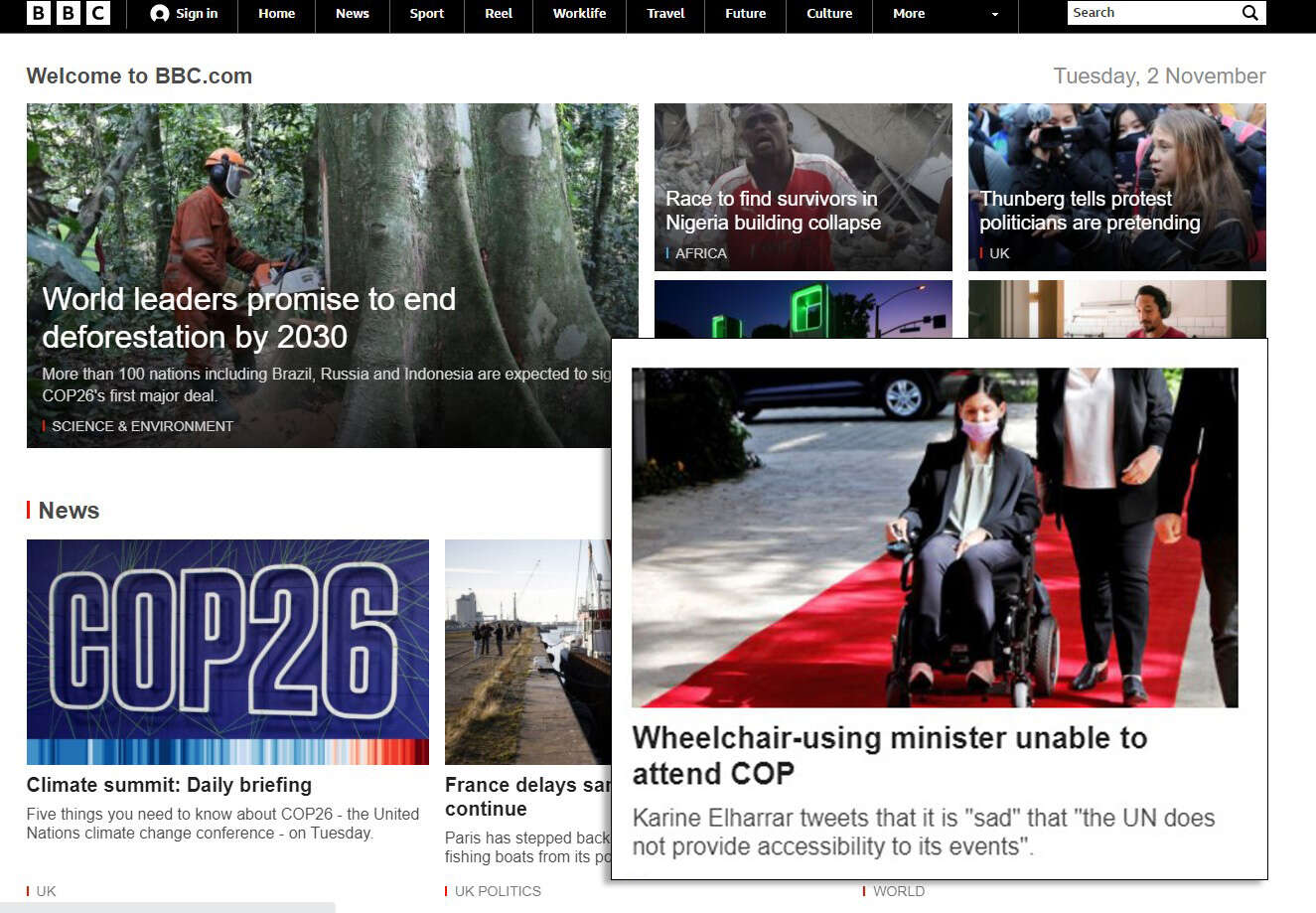 "השרה בכיסא הגלגלים לא הצליחה להשתתף בכנס", כתבו ב-BBC, תאגיד השידור הרשמי של בריטניה. בתגובה צייץ ג'יימס קלוורלי, שר במשרד החוץ של הממלכה כי הוא "מאוכזב ומתוסכל עמוקות" מכך שאלהרר לא הצליחה לגשת לפסגה, "ה-COP26 נועד להיות נגיש לכולם. דיברתי עם השרה על כך ואני מצפה לפגוש אותה בשלישי".