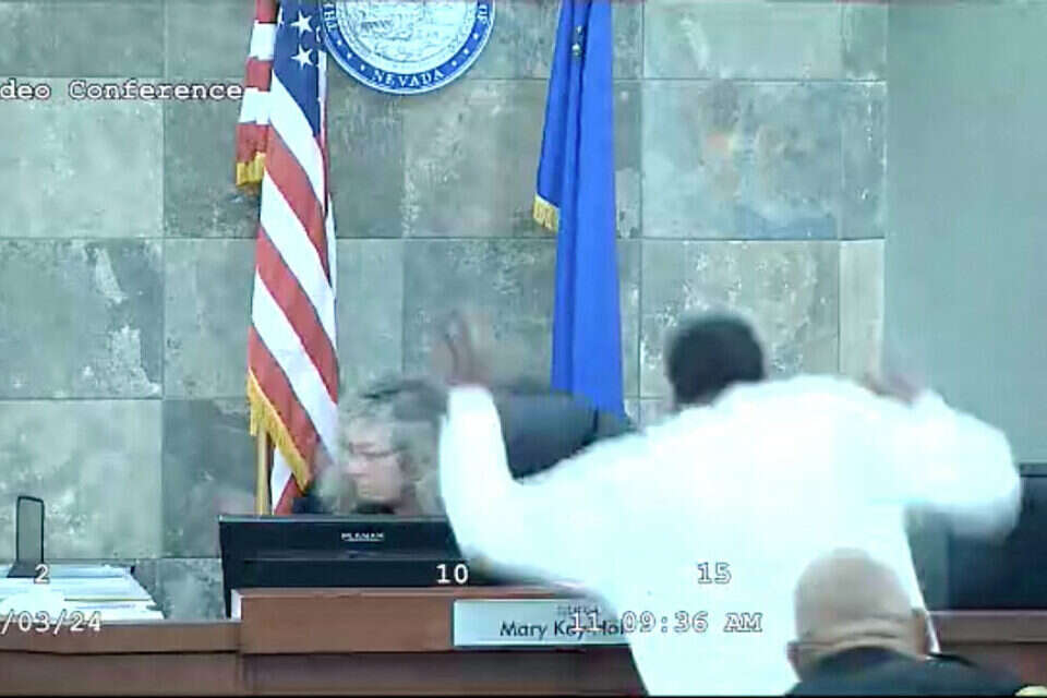 לעיתים רחוקות המונח "דרמה משפטית" מקבל משמעות כל כך פיזית. בית המשפט במחוז קלארק במדינת נבדה שבארצות הברית הפך לזירת התגוששות כשגבר זינק על שופטת בית הדין ופצע את אחד משומרי בית המשפט.