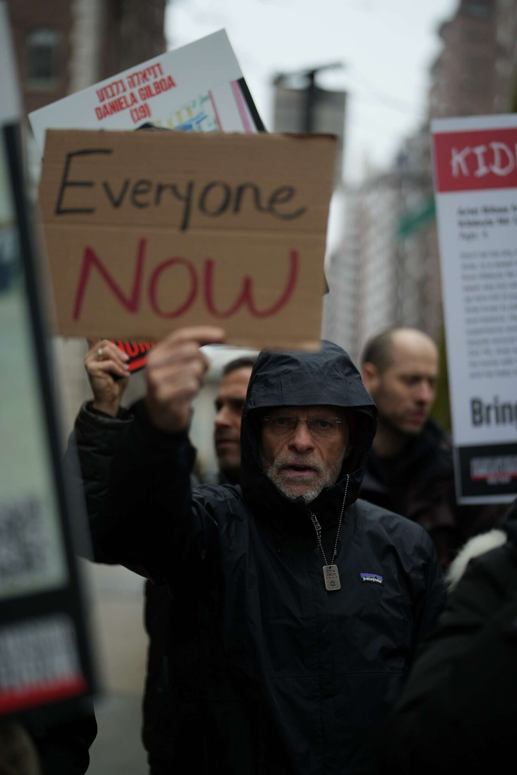 שני גרנות-לובטון ממטה משפחות החטופים: "אנחנו עומדים מול ביתו של מזכ"ל האו"ם כבר 12 שבועות. במיוחד היום, לקראת אירועי יום השואה הבינלאומי, היה לנו חשוב לבוא ולבקש ממנו להתבטא בצורה הכי חד משמעית ולהגיד בקול צלול וברור לעולם שאסור להכיל אנטישמיות, שלישראל יש זכות קיום ושטבח בחפים מפשע, אונס וחטיפה של אנשים ממיטותיהם אינם צורות לגיטימיות של מאבק או התנגדות.
