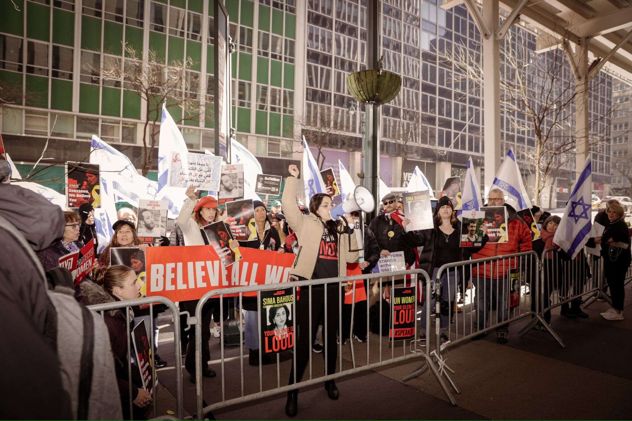 ממשיכים לטמון את ראשם בחול: פעילות מטה משפחות החטופים וארגון בונות אלטרנטיבה מפגינות כעת (שישי) מול משרדי האו״ם. זאת בעקבות השתיקה המתמשכת של ארגון הנשים של האו"ם נוכח ההתעללות המינית והפיזית שמבצעים מחבלי חמאס בחטופות הישראליות שמוחזקות בשבי. שתיקה אשר נמשכה גם לאחר שנחשפה עדותה המצמררת של עמית סוסנה, ששוחררה מהשבי.