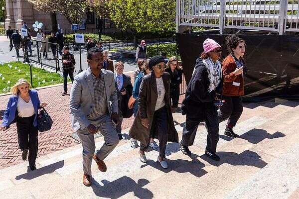 הולכת בדרכה האפילה של האם: חברת הקונגרס הפרוגרסיבית אילהן עומאר הגיע היום (חמישי) יחד עם בתה לאוניברסיטת קולומביה, לאחר שהאחרונה נעצרה בהפגנות הפרו-פלשתיניות הבלתי חוקיות שנערכו בקמפוס בשבוע האחרון.