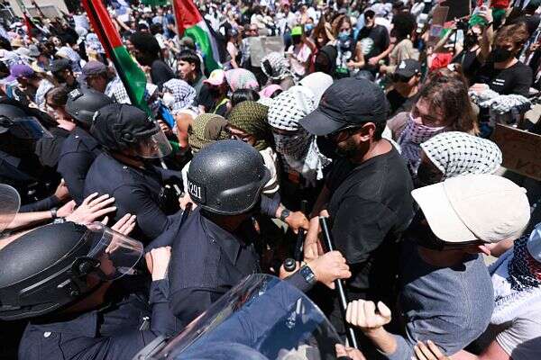 נשיא ארצות הברית ג'ו ביידן, מושל קליפורניה גאווין ניוסום וראשת העיר לוס אנג'לס קארן באס גינו אתמול (שני) מחאה פרו- פלשתינית שהתקיימה ביום ראשון מחוץ לבית הכנסת "עדס תורה" באחת השכונות היהודיות הגדולות בעיר.