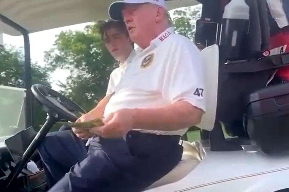 בסרטון שדלף לרשתות מראה את נשיא ארה"ב לשעבר דונלד טראמפ רכוב על עגלת גולף, כשלצידו בנו בארון. טראמפ נראה עם מדבר עם כמה אנשים אחרים כשלאחד מהם הוא נותן שטר של מאה דולרים.