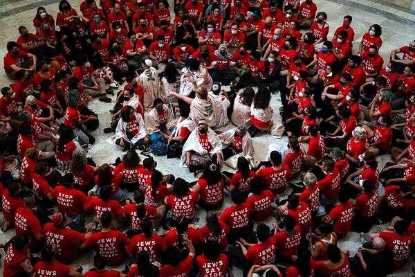 בצל נאום רה"מ בקונגרס האמריקני: מפגינים אנטי-ישראלים התאספו היום (שלישי) ברוטונדה של בניין קנון, אחד ממבני המשרדים של בית הנבחרים האמריקני בוושינגטון. הם מחו נגד הגעתו של ראש הממשלה, בנימין נתניהו, וכן כלפי ממשלת ישראל.