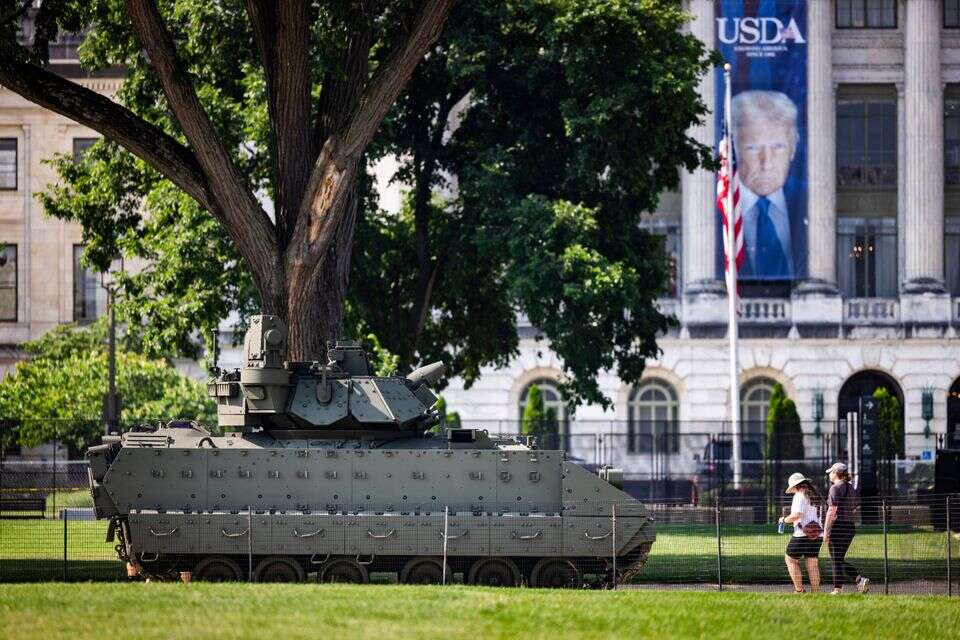 משוריינים, טנקים וחיילים על אדמת הבית הלבן: הכנות אחרונות המצעד הצבאי בוושינגטון // רויטרס