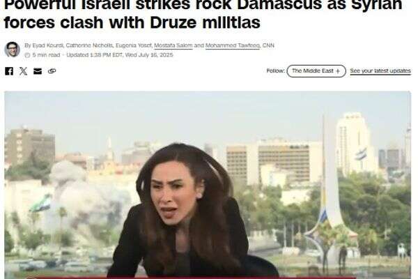 ב־CNN דווח כי ישראל תקפה מטרות בלב דמשק, ביניהן משרד ההגנה וקרבת הארמון הנשיאותי, תוך שהיא ״טוענת״ שמטרתה להגן על הדרוזים, המתוארת כ״קבוצת מיעוט ערבית המעורבת בעימותים קטלניים עם משטר א-שרע״. במקביל, דווח כי משרד החוץ הסורי גינה את התקיפות כ״צעדי הסלמה מסוכנים״ והודיע כי סוריה שומרת לעצמה את הזכות להגיב ״בכל האמצעים״. בכתבה גם דווח על קריסת הסכם הפסקת האש בסוריה, ועל מחלוקות בתוך הנהגת הדרוזים באשר להמשכו של העימות.