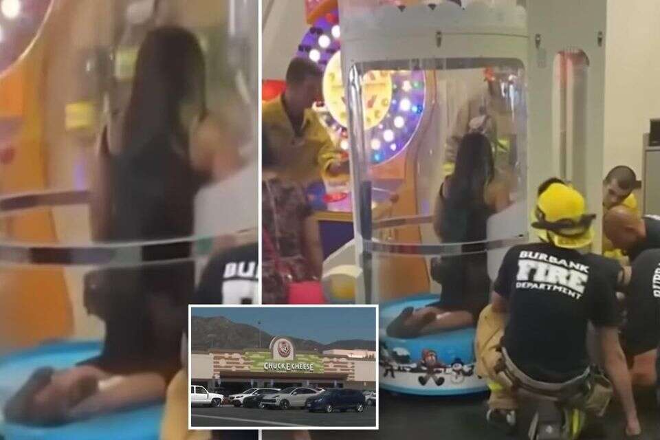 אישה צעירה נתקעה בתוך מכונת משחק המיועדת לילדים ביום חמישי אחר הצהריים בסניף של רשת הפיצה האמריקנית צ’אק אי צ’יז בברבנק, קליפורניה - לעיני קבוצה מופתעת של ילדים שצפו במתרחש.