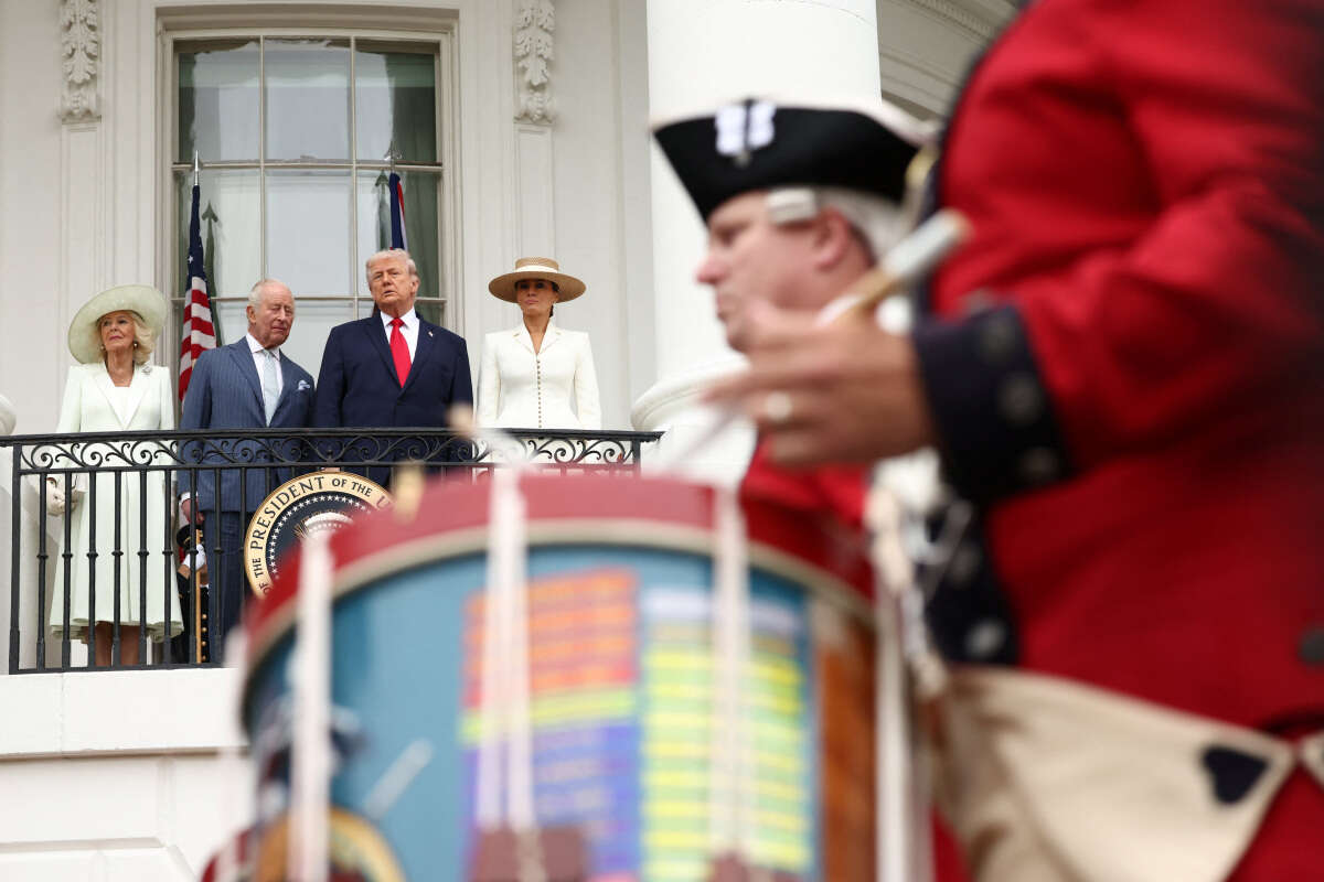 נשיא ארה"ב דונלד טראמפ אירח היום (שלישי) את מלך בריטניה, המלך צ'ארלס השלישי, והמלכה קמילה בטקס קבלת פנים חגיגי בבית הלבן, במסגרת ביקורם הרשמי בוושינגטון, והקדיש חלק ניכר מדבריו לקשר ההיסטורי והאישי העמוק שלו לבריטניה וליחסים המיוחדים בין שתי המדינות. המלך צפוי לנאום בהמשך היום בפני שני בתי הקונגרס.