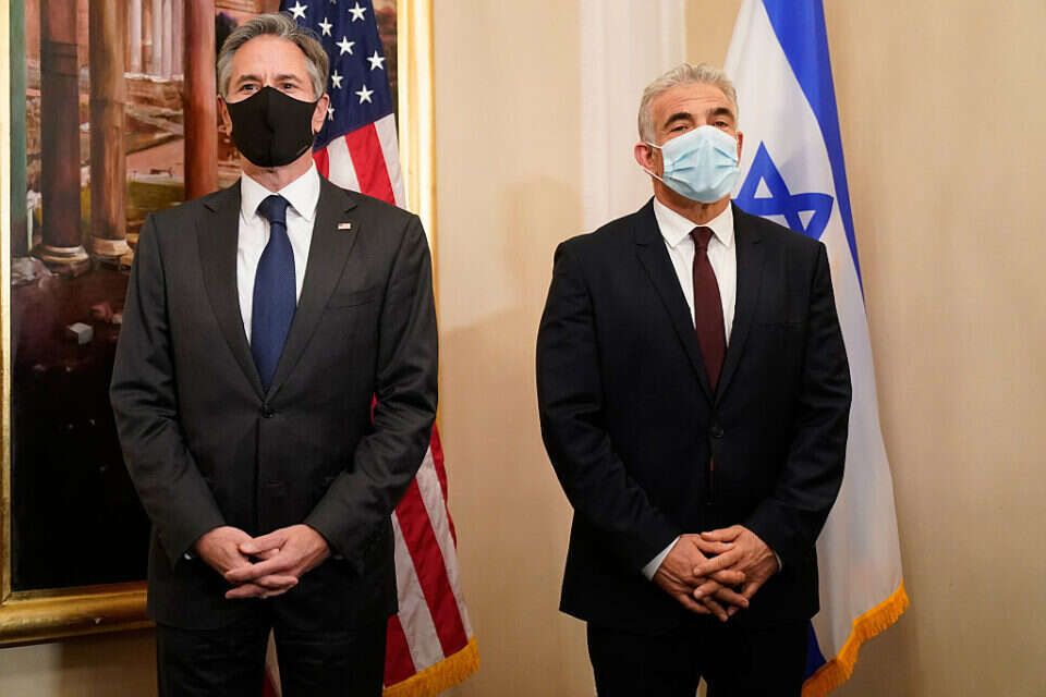 עוד אמר לפיד: "לישראל יש השגות לא מעטות על הסכם הגרעין המתהווה בימים אלה בוינה, אבל אנחנו חושבים שהמקום לדון בהשגות האלה הוא בשיח מקצועי ישיר. במאבק על חופש, דמוקרטיה וחתירה מתמדת לשלום, מזכיר המדינה בלינקן הוא חבר גדול, ושותף גדול. כמוני, הוא גדל בביתו של ניצול שואה, שאמר תמיד שחובתו של העולם הוא לשמור על בטחונה ושלומה של מדינת ישראל".