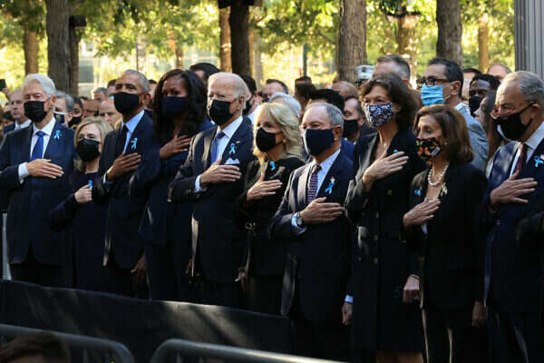 לצד ביידן השתתפו הנשיא לשעבר ברק אובאמה ואשתו בטקס הראשון שנערך בניו יורק, איפה שעמדו פעם מגדלי התאומים והיום יש אנדרטה גדולה ומתחם זיכרון עם שמות ההרוגים חקוקים סביב מפלי מים בדמות של בורות ענק.