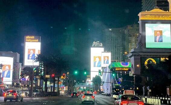 על המסכים העצומים, שבדרך כלל מפרסמים חדשות ומבצעים הקשורים לאטרקציות בעיר, הועלתה שלשום בלילה תמונה אחת ויחידה של אדלסון, עם הכיתוב: "שלדון אדלסון, 2021-1933". המחווה יוצאת הדופן הזאת נצפתה גם במסך הענק שניצב ליד אצטדיון אליג'יאנט בעיר, אשר נבנה עבור קבוצת הפוטבול המקומית.