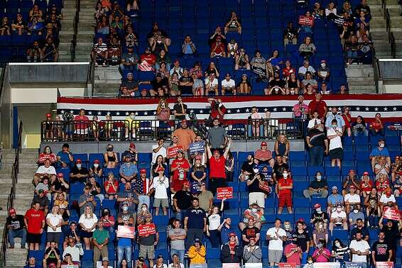 קהל קטן מהצפוי הגיע הלילה (בין שבת לראשון) לטולסה, אוקלהומה, לעצרת הבחירות הראשונה בעידן הקורונה של נשיא ארה"ב דונלד טראמפ. למרות ששעות לפני העצרת צוות הקמפיין של טראמפ הודיע כי שישה מחברי הצוות נבדקו חיובית לקורונה, רק קומץ קטן מהמשתתפים באירוע לבשו מסכות.
