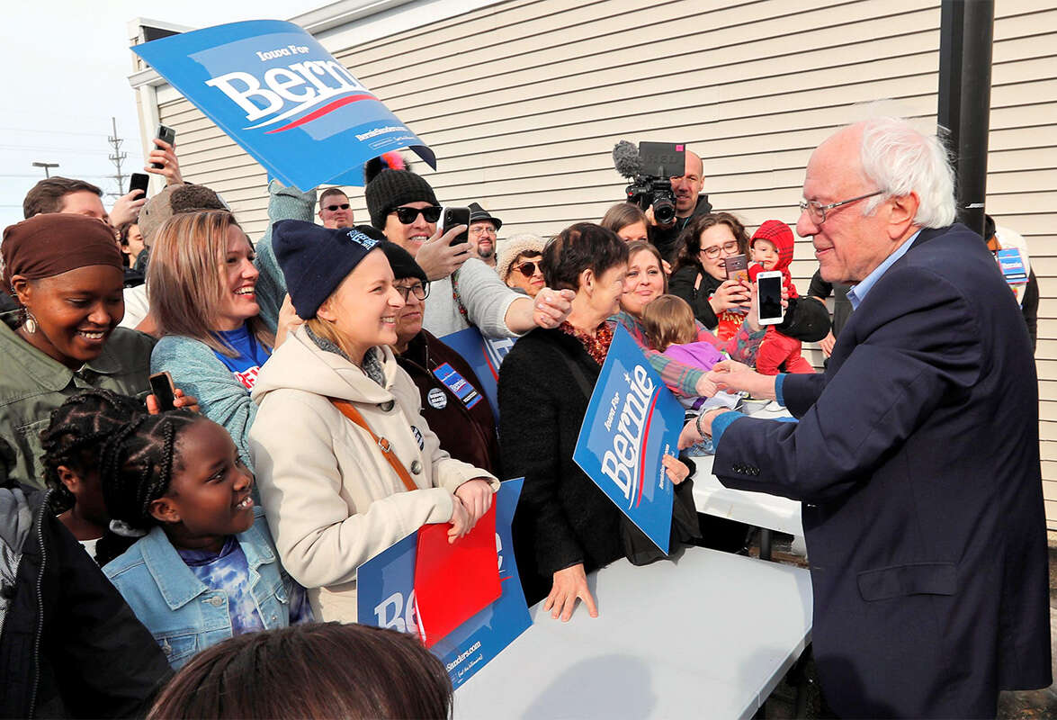 מן העבר השני מתייצב בזירה הסנאטור ברני סנדרס (בן ה־78), המציג מצע ליברלי־סוציאליסטי, שבמרכזו השאיפה להפוך את ארה"ב למדינת רווחה על פי הדגם הסקנדינבי, תוך הרחבה רבתי של תוכנית ממשלתית של ביטוח לכל. גם קבוצות התומכים בביידן ובסנדרס שונות לחלוטין זו מזו. בה בשעה שביידן נהנה מיתרון ניכר בקרב מצביעים מבוגרים וקשישים, סנדרס הוא אביר הדור הצעיר, הנסחף אחרי קריאתו לשנות מיסודה את הפרדיגמה הדומיננטית בנרטיב האמריקני, המעוגנת בעקרון הקפיטליזם הצרוף. הגם שבעורפם של סנדרס (המוביל בסקרים ביתרון קטן) וביידן נושפות גם דמויות נוספות, כולל פיט בוטיג'ג' (לשעבר ראש עיריית סאות' בנד שבאינדיאנה) ואליזבת וורן (שקרנה ירדה במקצת לאחרונה), אלומת האור העיקרית מופנית לעבר מה שמצטייר כדו קרב העיקרי בין שני היריבים המושבעים המובילים את החבורה הדמוקרטית.
