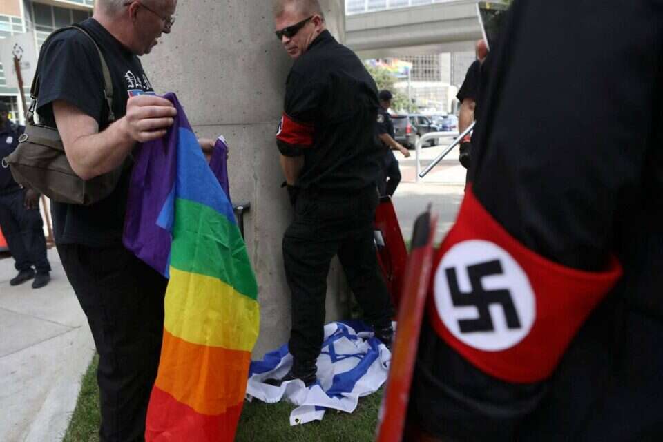 מפגינים ניאו נאצים חמושים באלות התפרצו למצעד הגאווה בעיר דטרויט, הניפו את דגל הרייך השלישי ורמסו ועשו צרכים על דגל ישראל ודגל הגאווה