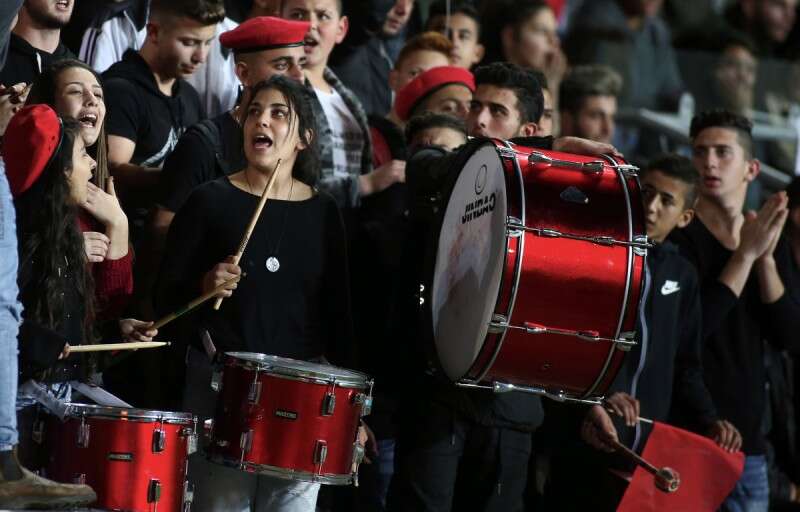 נשים מתופפות ביציע. מראה מרענן במגרשי הכדורגל // צילום: אלן שיבר