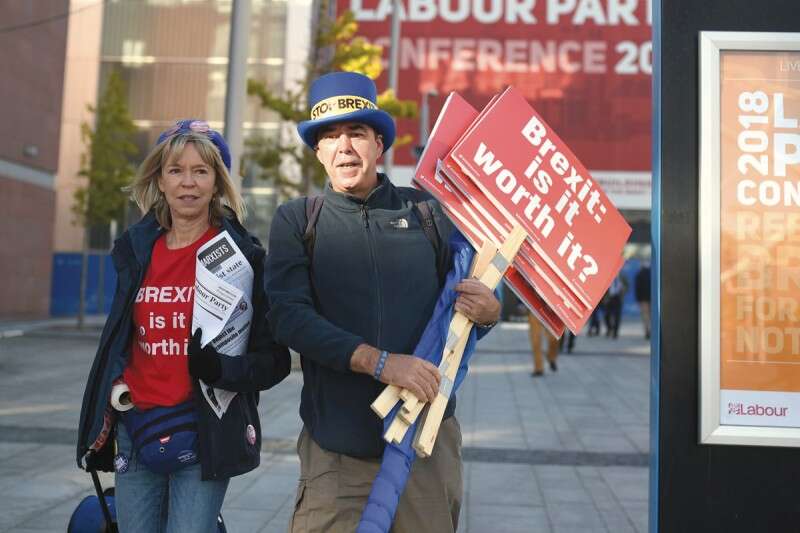 הברקזיט מבלבל את כולם. מפגינים ליד כנס הלייבור // צילום: אי.אף.פי