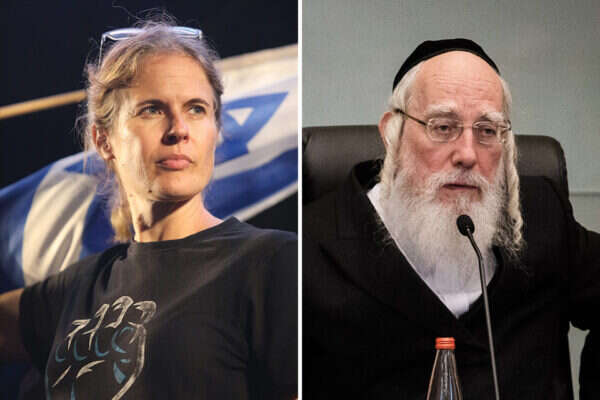 חבר הכנסת ישראל אייכלר יושב מול הפלומפ ומחכה שיזנק משם המשיח • פרופ' שקמה ברסלר יושבת מול הפלומפ ומחכה שתזנק ממנו ממשלת שמאל על־מלא